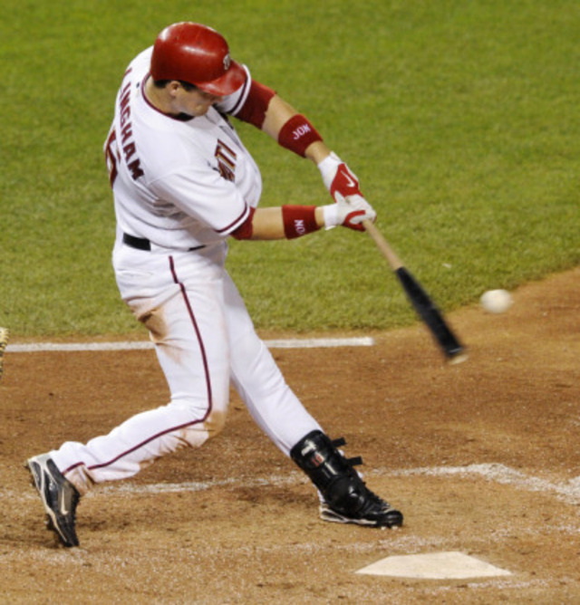 Oh man, Josh Willingham is about to demolish that ball — he doubled on this cutin the eighth inning last night. (AP Photo/Nick Wass)