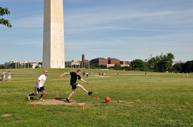 The DCist Flickr pool is filled with sporty action shots, from countryside bike rides to pickup basketball games. Kevin H. supplied some shots from a rec league kickball match, demonstrating the skill and grace required to play a kindergartner’s game that’s generally followed by group binge drinking. EXIF.