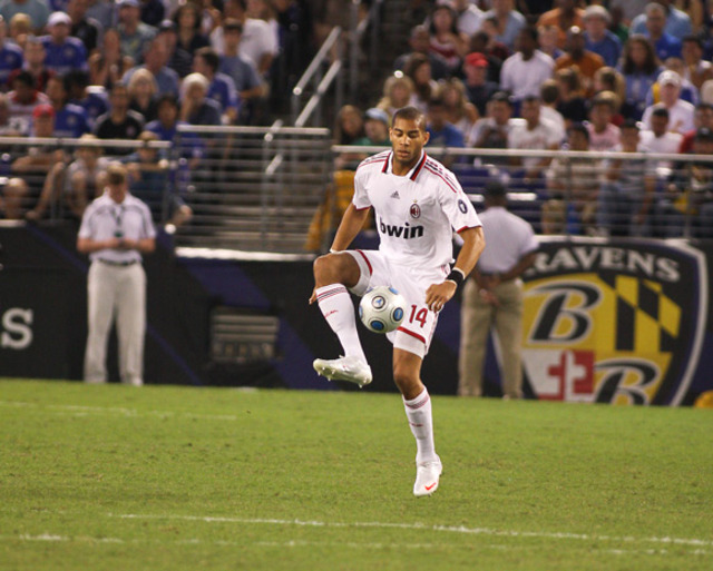 Onyewu, who was born in D.C., is now one of but a handful of Americans who can say that they’ve played for a Serie A side, let alone Milan, one of the most revered clubs in the world. The big defender, whose Nigerian name means “God fights for me” (now there’s a moniker to live up to), entered last night’s game against Chelsea in the World Football Challenge to an incredibly rousing ovation — a near-capacity 71,203 people at Baltimore’s M&T Bank Stadium chanting his name and applauding his entrance. Not too shabby for a guy with humble local roots in Silver Spring and Olney, Maryland.