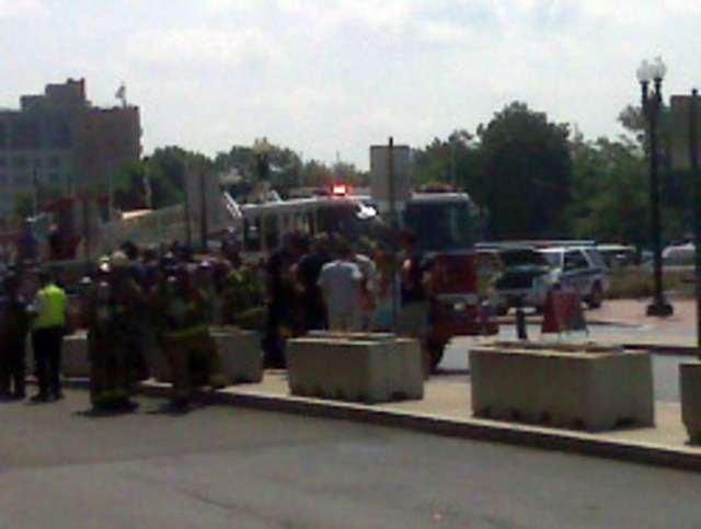 UPDATE 12:05 p.m.: So far fire officials say they have found no evidence of any explosion. There was some kind of plume of smoke and several people called in reports of a loud boom. Whatever happened, it doesn’t appear that any problem is happening inside the actual station. Dept. spokesperson Pete Piringer noted that there is a lot of construction in the area, though the source of the smoke and booming noise has not been determined.