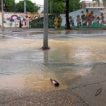 Florida Ave. resident Gregg Hammond says he was alerted to the break when he heard a sound like an explosion from the end of the block. Hammond says that water officials turned on water too quickly at the View 14 residential building at 14th and Florida, which is in the final stages of construction, and the main broke when gushing water hit dry pipe. Flooding water poured from Belmont down 14th, meeting water flooding from Florida and 14th, depositing large banks of silt and other sediment along both sides of Florida Avenue.