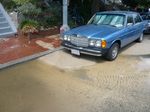 Hammond says he first called 9-1-1 upon hearing the explosion at 1:07 p.m., but received no answer on the emergency line after several calls. He says he tried 3-1-1 but received no assistance, and was only able to get through at 9-1-1 after walking up to 14th and Belmont to alert WASA figures dealing with the main break at that intersection that there was another break—and flooding—at the bottom of the hill on Florida. According to Hammond, a fire engine arrived after 40 minutes and turned off the water.