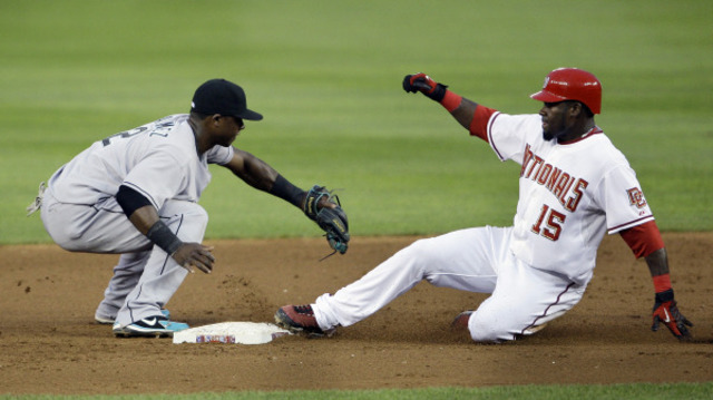 Cristian Guzman, seen here sliding into second during last night’s win against Florida, is at the core of the Nationals’ recent red-hot streak. (AP Photo/Haraz N. Ghanbari)Nationals 5, Marlins 4: Who is this team? Surely, it’s not the same Nationals which we grew accustomed to in the first half of the season, is it? Last night, the Nationals showed that when they’re on a tear, they can be a very tricky knot to untangle. Ryan Zimmerman and Adam Dunn wasted little time and went back-to-back in the opening inning — Dunn’s third consecutive game with a longball — and staff ace John Lannan (8-8) upped his record to 5-1 with a 1.97 ERA at Nationals Park this season by scattering seven hits. Florida made it a game with two runs off Sean Burnett, but closer Mike MacDougal (yup, he’s on a streak, too) slammed the door shut in the ninth to earn his fourth save in four games.