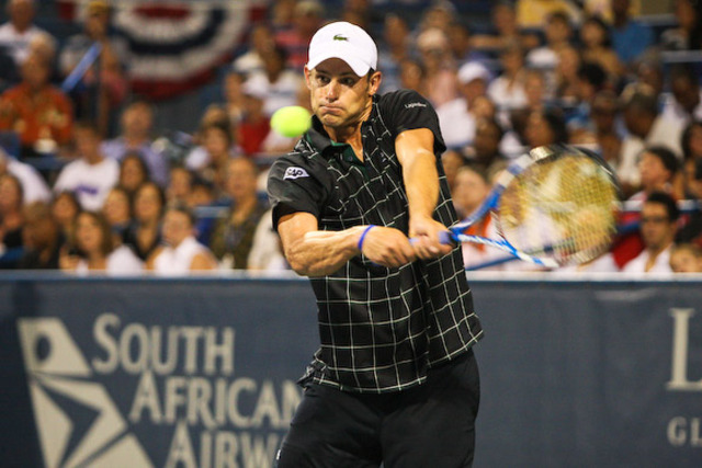 Crowd favorite Andy Roddick had little trouble with Benjamin Becker last night, cruising to a straight set victory (6-3, 6-2) in his first match of the tournament. After an extended break since his defeat to Roger Federer in the Wimbeldon final, Roddick was far from the top of his service game, landing only 58 percent of his firsts and routinely hitting in the one hundred and teens — though at one point he did hit 145 mph on the radar gun. But his arching, powerful forehand and ability to paint the lines was more than enough for a victory in a tight 55 minutes. Speaking of his first match in four weeks, Roddick said that his “movement felt real good. I felt that I had decent control over spins and placement and good ball control.” He acknowledged the large stadium court crowd — organizers announced a sold-out evening — who rewarded him with thunderous applause that only grew louder when the emcee acknowledged his performance at Wimbledon last month.