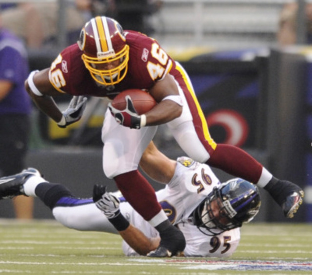 Football. It’s almost here. (Of course, Ladell Betts will probably want to do betterthan seven yards on four carries come September.) (AP Photo/Nick Wass)