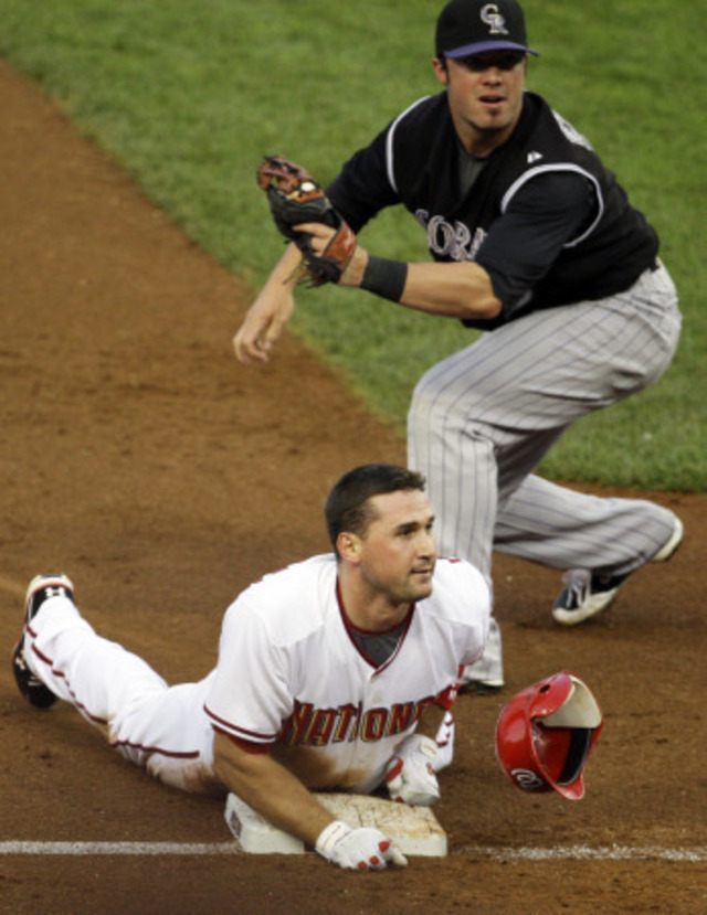 Ryan Zimmerman slid in safely with an RBI triple, but the Nationals felljust short again. (AP Photo/Haraz N. Ghanbari)
