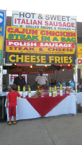 “Steak in a Sac”? Flickr contributor Maryland Route 5 has been taking some fantastic photos of the Arlington County Fair over the last couple of days. But it was this one which really caught our eye, if only for the pure amount of meats slathered in artificial cheese or stuffed into casings on offer at this particular stand. If you haven’t gone to indulge in your share of internationally-styled flesh and fries, the fair runs through tomorrow. Vegetarians beware, indeed.