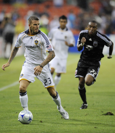 Becks got on the ball here, but was mostly a non-factor. (Bonus: in this photo,he still has his shirt on.) (AP Photo/Nick Wass)