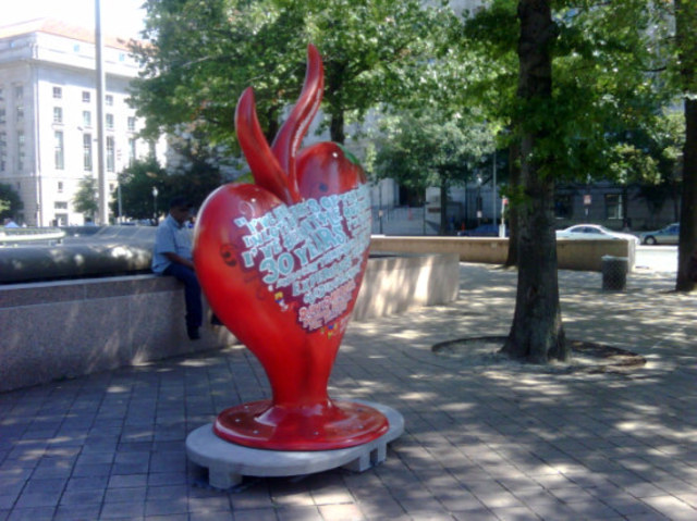 Dozens of these heart-shaped sculptures popped up all over Washington at the end of last week, and we’ve been getting a lot of questions about what they’re doing here and what they mean. The hearts themselves are part of an official advertising campaign, dubbed “Discover Colombia Through its Heart,” from the Colombian government’s tourism board, which has taken the form of a traveling international art exhibit.