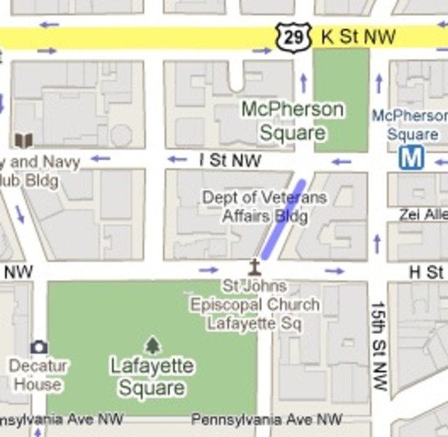 The First Lady’s office has put in a request to close Vermont Avenue between H and I Streets NW between 1 p.m. and 8 p.m., every Thursday, for the market. The day of the week and time of the proposed market certainly fits in with what DCist commenters were saying they’d like to see in terms of a White House farmers market, but the proposed location was up until this point unknown. This block of Vermont stretches between the far corners of Lafayette Square and McPherson Square. The WTOP article makes mention of some concern from residents about the potential for further traffic congestion in an already clogged area. We gather the Secret Service would prefer not to set up a weekly market right on Pennsylvania Ave., where the street is already closed to vehicular traffic.