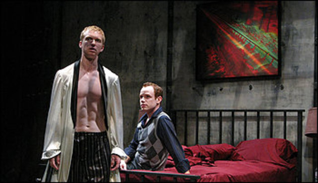 Roderick Hill and Sean Dugan in “The Picture of Dorian Gray.”I can’t help thinking that Oscar Wilde’s Dorian Gray would have little interest in the character of the same name embodied by Roderick Hill in Round House’s season opener, the world premiere of a new production of The Picture of Dorian Gray. Sure, this Gray’s a slashing murderer, a sexual deviant and a good-looking-enough-guy (in a CW teen series kind of way). But yet, he still manages to be kind of boring.