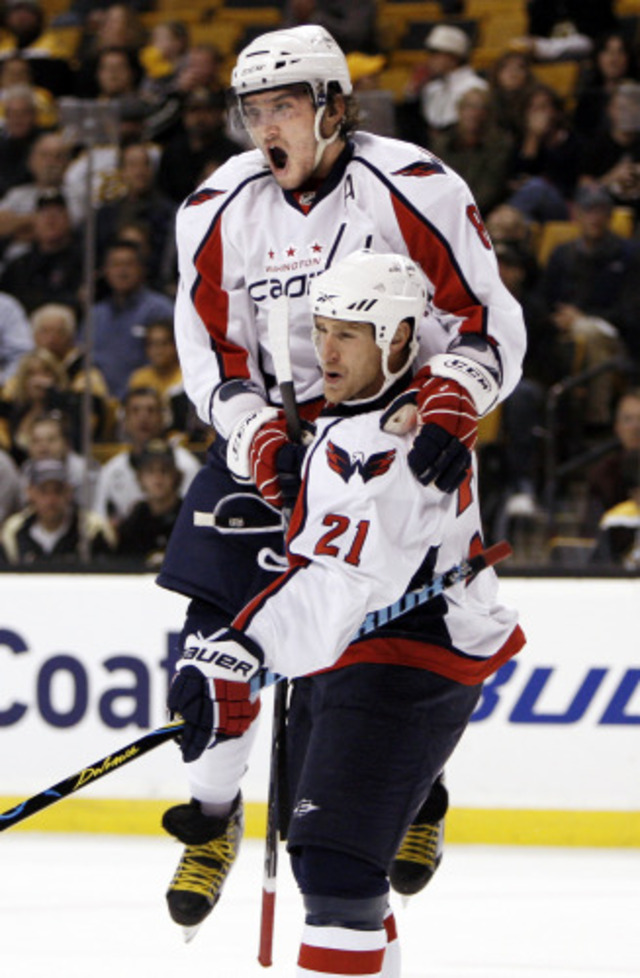 Ovie and the Caps, quite literally, got off to a flying start in Boston.(AP Photo/Winslow Townson)