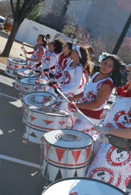 Batala Washington, performing earlier this year in the Cherry Blossom ParadeYou’ve probably seen them around, either practicing, performing at a community event, on local television, or marching down the street in a parade. They are hard to miss, after all. An infectious percussion ensemble comprised of a couple dozen or so colorfully dressed women isn’t something one sees everyday. Of course, we’re talking about Batala Washington, the all-women’s drum corps that has brought smiles and the spirit of rhythm to the District since its formation in 2007.