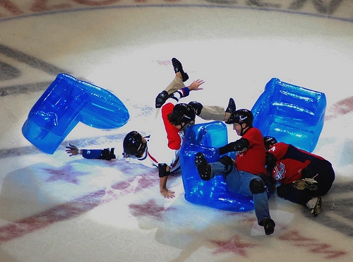 At first glance, Ghost Bear’s shot appears to consist of posed figurines and gummy candy. Upon further inspection, he’s captured a perfect, slapstick moment from intermission at Saturday’s Caps game.