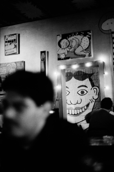 Staceyviera’s photo Creepy Grin is just that, creepy. The man in the foreground seems to have no idea that he is being watched. The painting above the grin, of a hairy man in his boxers sleeping while his clock is doing some bizarre smiling dance, adds to the weirdness of the scene.