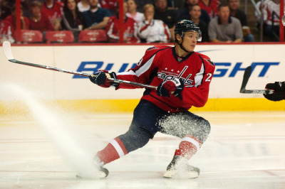 Alex Semin was all over the ice Wednesday, helping Chris Clark andSemyon Varlamov push the Caps past the tricky Islanders. Photo by choofly.