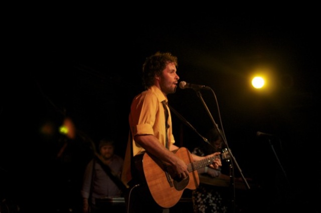 The crowd swelled forward for Blind Pilot. Israel Nebeker, singer and one of the founding members of the group, moved to the front and center of the stage. He wore a cheesy tie and a shirt Dwight Schrute would have been proud of. His guitar bore the scars of age and endless touring. They opened with “Two Towns From Me,” a song about a dream in which a distant love moves close again. Like all of Blind Pilot’s songs, the music is simple—the lyrics and vocals take the focus. Where their recordings are spare, their live show has been beefed up with the addition of four new musicians. The songs remain faithful to the originals, but certainly benefit from the added oomph and texture of bass, banjo, and vibraphone with reverb. Nebeker’s calm voice rides above it all and he plays with ease. He gives the impression that he could easily pen a song in five minutes with only a few chords. The band smiled into the audience and at each other. Their energy was infectious and people bopped along to the tunes they knew.