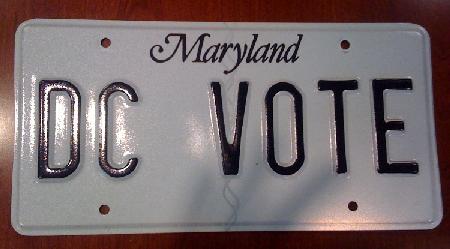 Today on WTOP’s Politics Program with Mark Plotkin, Maryland resident Larry Ottinger described an initiative he’s spearheading to find a resident in each of the 50 states who is willing to purchase a personalized license plate bearing the message, “DC Vote.” Ottinger recently procured a personalized tag himself, and is hoping to get the 49 remaining plates by the November 2010 election.
