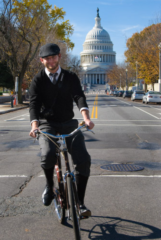 Scores of well-met journeymen and women gathered yesterday in the northeast of the Capital city for an expedition to celebrate the latest in fashion, industry and whimsy. This peregrination saw fashionable fellows and dandizettes tour the city by bi-cycle and fixed-gear machine. A good time was had by all!