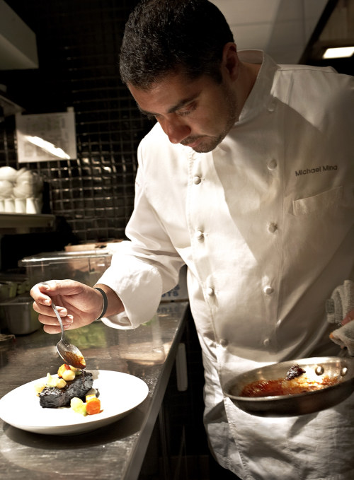 Chef Michael Mina in the kitchen at Bourbon Steak. Photo courtesy Amber Pfau.Now that we know the outcome of the 2009 Capital Food Fight to benefit D.C. Central Kitchen, we have to wonder whether Chef Michael Mina was laying it on a little thick last week when he said he was scrambling to try out some recipes that he could whip up in 10 minutes. Mina wound up the big winner at the Iron Chef-inspired cooking competition, seizing the title from former two-time champ Barton Seaver and out-slicing, -spicing and -dicing the likes of Bryan Voltaggio, Mike Isabella and others. When he sat down to talk with DCist earlier that day, however, he was just hoping to make it past round one.