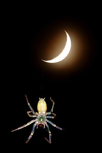 New Moon? Yeah — new spider moon. Death Eater philliefan99 captures this balls-out scary picture of Shelob-in-the-Sky. It’s more terrifying than even the prospect of watching all seven million youtube responses to that New Moon rom-com, the movie all my girlfriends are seeing today, about the guy who can’t stop sparkling and his goth girlfriend and I think a Teen Wolf. No, there isn’t anything happening this weekend that’s going to shake this picture from my head. Health-care reform? Blanche Lincoln’s vote can’t save you from a giant cosmic arachnid. Holy hell, but this picture is horrible.