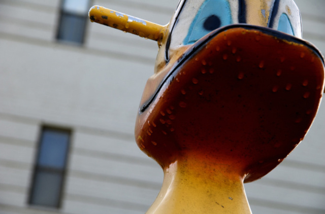 The description of Flickr user ::FiZ::‘s playground capture reads “Playgrounds are scary.” Sure, if you go out on a gloomy day after a storm and angle the shot such that an innocent duck looks like an evil dictator, then I guess every playground is just littered with clowns and mimes. EXIF.
