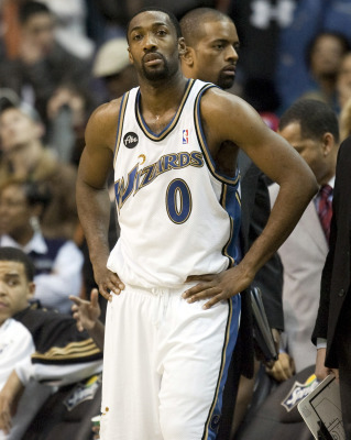 Gilbert Arenas stands in awe, as his first triple-double in five yearsis wiped out after he couldn’t hit two free throws at the end of
