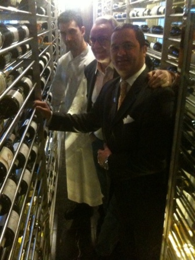 Alain Ducasse with Adour DC Chef Julien Jouhannaud (left) and wine director Ramon Narvaez (right). (Josh Novikoff). France’s world-renowned Alain Ducasse was in town to re-launch the menu of his restaurant, Adour DC at the St. Regis. The hotel is now sans scaffolding, and the restaurant has made a few tweaks to make its menu more accessible. A handful of plates can now be ordered as half portions, including a deep red tuna tartare appetizer and a scallop entrée served with herb gratinated vongoles, like perfect baby buttons of clams casino. Cuts of meat such as a Flintstonian bone-in ribeye for two or a bargain priced hanger steak are on offer, with a spiced up spaghetti squash. And for dessert, we’d go with the silky hazelnut soufflé or anything else that comes with sorbets that embody the essence of their fruits.