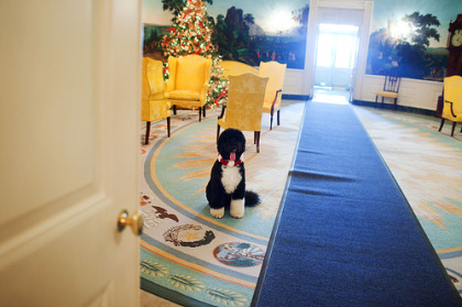 The President may now be relaxing on vacation in Hawaii, but the days leading up to Christmas were a flurry of activity around the White House. From the Second Lady dressing up as the Grinch to a gingerbread and white chocolate White House made by White House pastry chefs, everyone got into the holiday spirit. We like this snapshot of the First Puppy, Bo, who sat quietly in the Diplomatic Reception Room, waiting for Christmas to arrive.