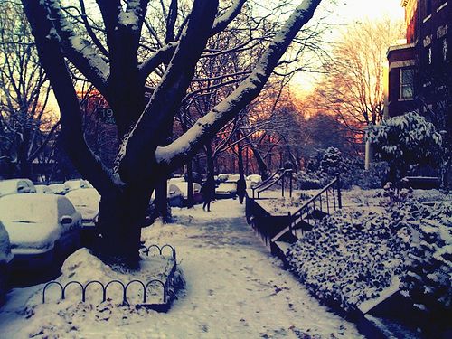 Even though you might be a bit disappointed by your non snow day, you have to admit there is something magical about the quiet dusting of snow. Flickr user katmere captured the sentiment in a pretty street scene, showing off the white stuff in lovely light.