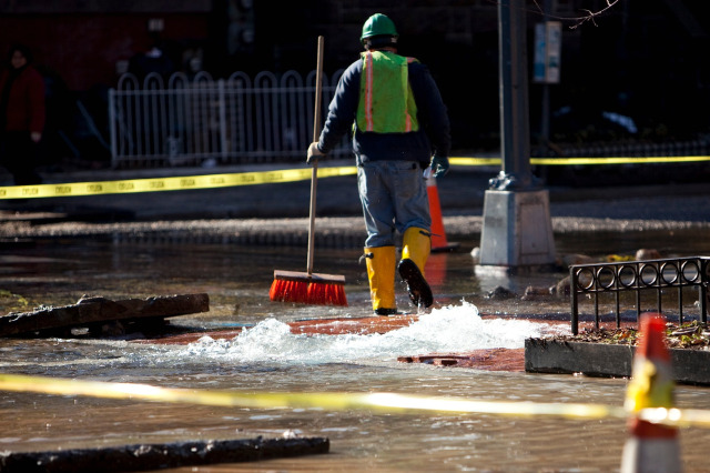 DDOT and DC WASA are on the scene, and DCist photographer Max Cook reports the rush of water appears to have slowed down a bit since this morning. The break was caused by a DDOT contractor that struck the 20″ main, which was installed in 1877, according to DC WASA spokesperson Alan Heymann. Water service in the area has not been affected thus far, Heymann said.