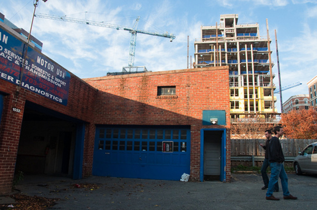Current site of the new Dr. Dremo’s in Arlington, pre-buildout, with owner Andrew Stewart in the foreground. Photo by Eddie Kim.It’s looking good for a reincarnated Dr. Dremo’s in Arlington, as owner Andrew Stewart has managed to drum up support from several investors. (Stewart is still looking for additional investors, and can be contacted at newdremos [at] gmail [dot] com.) The new location is a former auto shop located near North 10th St. and Fillmore St. not far from the Clarendon Metro station, where we joined a meeting held with investors to discuss plans. Stewart recently informed his group via email that he will be pursuing a 10-year lease for the property, and he says construction cost estimates for building out the current structures at the site are within budget.