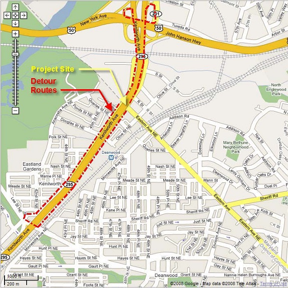 - Westbound traffic on Eastern Avenue NE needing to travel southbound on Kenilworth Avenue will make the right-hand turn from Eastern Ave. onto northbound Kenilworth Ave. and follow the detour on New York Ave/ Route 50 to gain access onto southbound Kenilworth Ave.