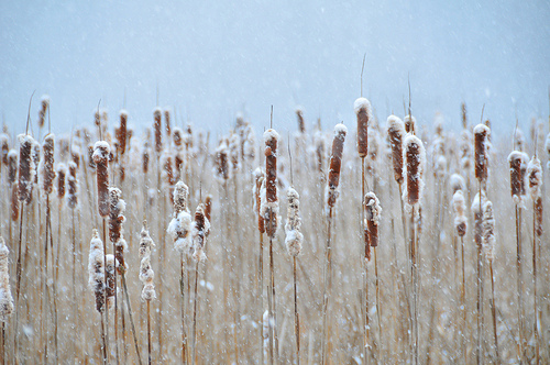Andertho found some snow covered cattails in this weekend’s storm, and made this nicely composed photo. I can’t help hoping he actually stumbled upon the place where corn dogs on sticks grow.