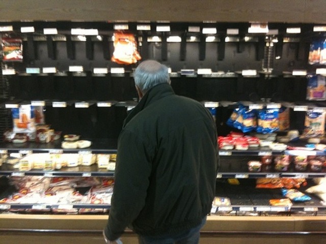 Last night’s collective raid on area grocery and hardware stores left shelves bare and patience worn thin. We’ve heard about hellishly long check-out lines, like at the Foggy Bottom Trader Joe’s, where the line actually looped twice through the entire store and out the door. We’ve heard about people losing their sense of perspective. We’ve heard about gridlocked parking lots. But it doesn’t really sink in just how bad of a pre-storm freak out Washingtonians has last night until you look at the photographic evidence.