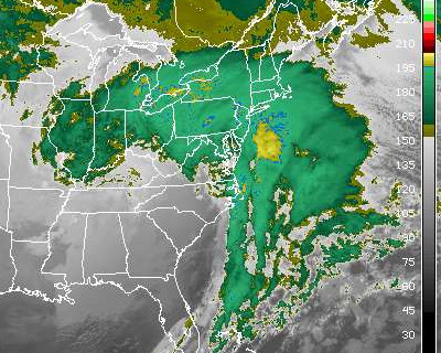 Infrared image of the 2010 blizzard.While battling cabin fever and trying to find that tray you stole from your college cafeteria for sledding, you might be wondering where the current snomgasm, snowmageddon, or whatever ranks in the all-time pantheon of D.C. area weather storms. The National Weather Service sure likes the chances of record-breaking accumulation; as far as we can tell, there’s a pair of historic storms which compare well with the one that’s currently sauntering its way through our city.