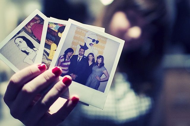 Art within art within art: today’s photo is a little bit recursive. Tracy Clayton captured the painted nails and Polaroid goodness of one of the attendees at the opening of “Activation 2719,” who had herself captured some of the art on the walls. “Activation” opened over the weekend and runs through March 12.