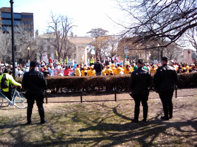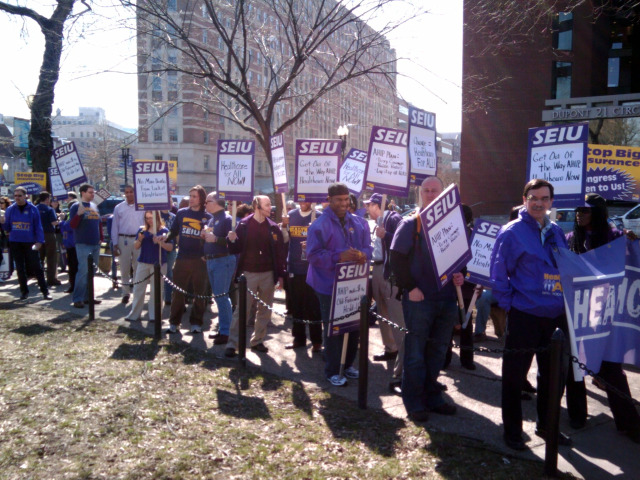 The health care insurance industry is meeting at the Ritz-Carlton Hotel today for its National Policy Forum conference, and reform activists are busy taking to the streets of Washington as a result. A large group has gathered in Dupont Circle to hear from former Vermont Gov. Howard Dean and other speakers. When that’s over, they plan to march to the Ritz-Carlton, so watch out for traffic delays and high pedestrian volume in the area.
