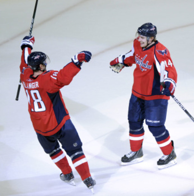 Tomas Fleischmann (R): What, me worry? (AP Photo/Susan Walsh)Capitals 4, Hurricanes 3 (OT): For the second game in a row, the Capitals blew a 2-0 lead. But this time, they pulled it out in overtime, the first time in the last four extra session matches they’ve got the full two points. Jose Theodore, despite letting in three goals, made many key saves, including a stop on a penalty shot in the first period. Mike Green added a pair of power-play tallies, and Alex Semin scored his 31st goal of the season. The game-winner came from Tomas Fleischmann, his 19th goal of the year — no tiny haul. But Flash — who didn’t play in Monday’s 4-3 loss to Dallas — suddenly finds himself a man fighting for a roster spot on a team full of offensive weapons. “If the circumstances weren’t what they are, he wouldn’t be sitting out,” head coach Bruce Boudreau said of Fleischmann. “We’ll keep rotating guys in and out of the lineup. The players don’t like it, but they understand it.” Fleischmann scored 14 of his goals in his first 25 games this season, but only five in his last 30. The natural reaction is feel bad for Fleischmann, who’s certainly been a fine servant for this team this season. But if you take the angle that an even rotation could recharge the batteries heading into the playoffs, it certainly is much easier to understand, probably even for those who have to share time.
