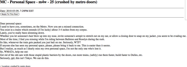 Most of the time, I find you missing while I’m riding between Ballston and Rosslyn during the rush.
