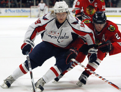 - The Caps pulled off an incredible comeback in Chicago to beat the Blackhawks, 4-3 in overtime. (And yes, commentariat, we were watching.) Scoring three goals in the third in 196 seconds — without Alexander Ovechkin, no less, who was ejected for a completely bogus boarding call in the first period — Washington capped things off with a wild Nicklas Backstrom tally in overtime. The Swede turned the puck over, got it back, headed back down the ice, and put the puck in off a 3-on-2. It was a firm figurative shot across the bow of the ‘Hawks, reminding them that the Caps — who only need a brief time to completely take control of any game — are the most dangerous team in the league.