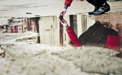 Despite the dreary gray of the weekend, Flickr user .lissa went out and made this colorful image. The red coat and red house bring a little cheer to an otherwise gloomy Ides of March.