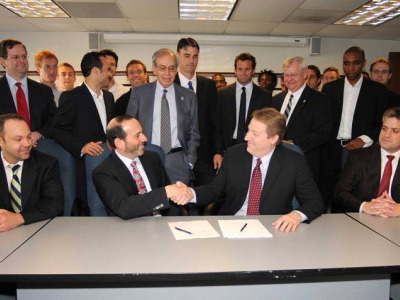 MLS and the MLS Players Union agreed in principle to a new CBA today,Saturday, March 20, 2010. MLS Commissioner Don Garber (left center) and MLS