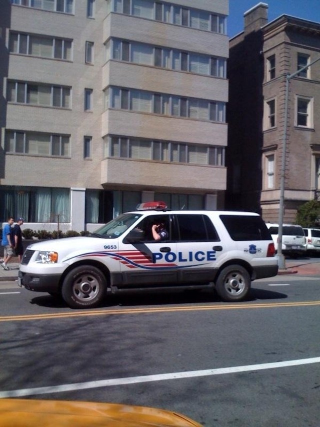 Seen on Saturday in Dupont Circle: A cop, in his SUV, entering Dupont Circle, LOUDLY talking on his cell phone as 10-15 people on both sides of the street watch/listen as he speaks with his wife. As long as this city continues to enforce the hands-free law, shouldn’t those who are trusted to enforce it also abide by the same laws?