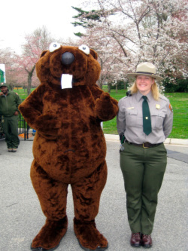 National Cherry Blossom Festival mascot “Paddles the Beaver” surely wants tourists to leave lots of money behind this year. Photo by Joe DanielewiczWhen the National Cherry Blossom Festival starts Saturday, the tourists who come to see the trees will leave behind an estimated $126 million in the D.C. metro region over the course of the event, according to a George Mason University study released Thursday.
