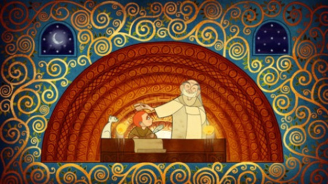 Kells takes place in a ninth century Irish abbey, as the monks there attempt to fortify the walls against the coming Viking scourge that threatens to eradicate them completely. They’re led by Abbot Cellach, a severe man with no time for fooling around, who thinks that his nephew Brendan’s interest in art, and in helping an elderly Abbot complete the illuminated religious text of The Book of Kells, is a waste of time and energy in dire and dangerous times. In order to help with the book, Brendan must journey into a forbidden forest to gather berries used for the ink, and along the way meets a fairie who doesn’t usually take kindly to intruders.