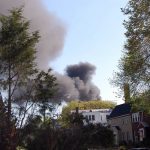 Firefighters responded to a blaze at Eastern Senior High School at 1700 E Capitol Street in Northeast today after smoke was reported late this afternoon. The building was quickly evacuated and a second alarm was sounded. Emergency officials reported no injuries, according to D.C. Fire and Emergency Medical Services. The school, which is currently undergoing a $76 million renovation begun in 2008, did not suffer significant damage inside the building. The fire occurred on the building’s roof, where a construction crew was working to replace rubberized roof material, D.C. Fire and EMS spokesperson Pete Piringer told DCist. Because the the roof structure is made of concrete, officials expect that fire (or water) damage was confined to the roof’s top. Officials are still investigating the cause of the fire.