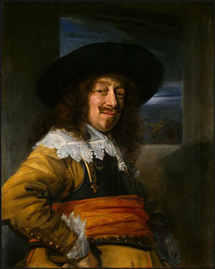 Our Civic Guard here opts for a fine, ferrety mustache, with a tufty add-on tail trailing chin-wards. This man is a soldier (seen from his steel breastplate) but on the days this picture was painted, he put on his Sunday best (broad-brimmed hat, lace collar and cuffs) instead of his work clothes.
