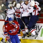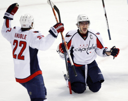 Skates? Ovie don’t need no stinkin’ skates. (AP Photo/The Canadian Press,Ryan Remiorz)Capitals 5, Canadiens 1: Most NHL early-round playoff series usually turn on one particular moment. As much as one can diagnose after but three games, the obvious choice for the Washington Capitals in their opening matchup with Montreal is Nicklas Backstrom’s inspiring Game 2 hat trick, which seemed to shake a mini-slump for the powerful Caps. But could it be that we’ll remember this series more for Jaroslav Halak’s shaky arm? Alexander Ovechkin said that he could tell Halak — who played fine in Game 1 — was vulnerable on Saturday night because his arm was shaking during a break in the action. Dan Steinberg goes Zapruder-style and concludes that, indeed, Halak’s arm was “shaking like a feather floating over an Icelandic volcano.” If there was any doubt that Halak was rattled by the Caps’ spirited comeback, it was eliminated on Monday night. Washington skated rampant over a Montreal team that was oh-so-close to taking a 2-0 series lead back to Quebec, knocking Halak out after three unanswered goals in the second period. Of course, Ovie can make any goalie look helpless; after Halak exited, the Russian proceeded to terrorize Habs backup Carey Price, scoring on a one-timer from his knees to cap a four-goal middle period. Semyon Varlamov got the start over Jose Theodore and likely hammered down the Game 4 start, recording 26 saves and looking sharp. The Caps offense absolutely brutalized the Canadiens at even strength — three Montreal skaters registered -4 ratings.