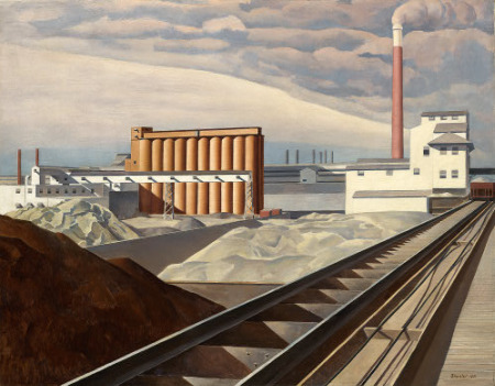 In 1927, the American artist Charles Sheeler (1883 – 1965) was paid to photograph Ford Motor’s new River Rouge Plant near Detroit for the company’s advertising campaigns. During the course of the commission, he became so profoundly inspired by the subject (calling it “incomparably the most thrilling I have had to work with”), that he went on to paint several pictures of the plant.